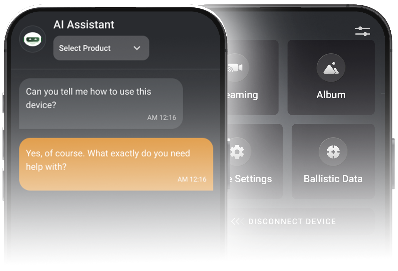 ATN 6 Connect links your ATN device to your phone or tablet for fast setup, live view, smooth control, and media management. It also introduces a built-in AI assistant trained on your product’s full manual, giving you instant, accurate answers anytime you need them.